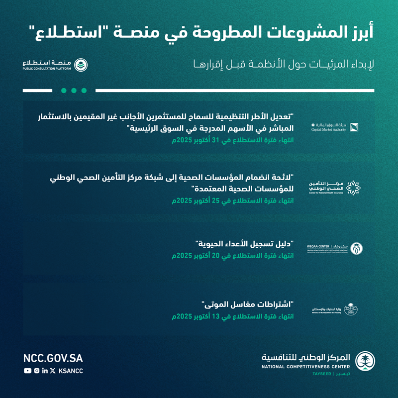 طرح 24 مشروعاً عبر منصة "استطلاع" لأخذ مرئيات العموم والقطاعين الحكومي والخاص