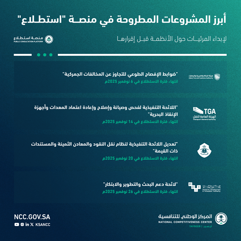 طرح 28 مشروعاً عبر منصة "استطلاع" لأخذ مرئيات العموم والقطاعين الحكومي والخاص