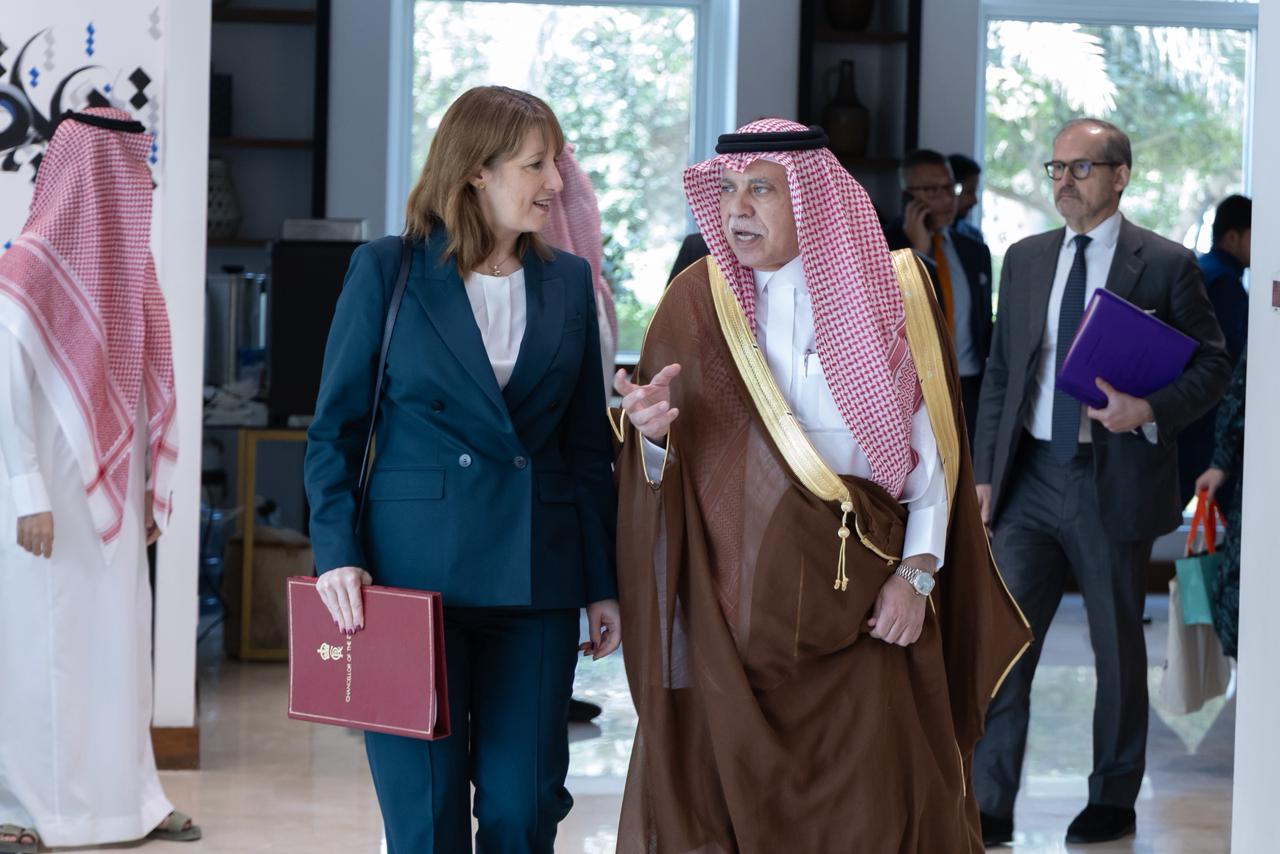 H.E. Dr. Majid bin Abdullah Al-Kassabi, Minister of Commerce and Chairman of the National Competitiveness Center, met a British delegation led by Rt. Hon. Rachel Reeves, UK Chancellor of the Exchequer, and Mr. Jason Stockwood, UK Minister of Investment, in the presence of H.M. Dr. Stephen Charles Hitchins, British Ambassador to Saudi Arabia, along with a number of senior British officials.