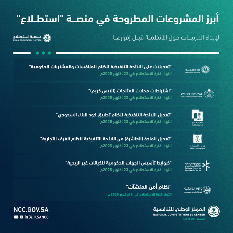 طرح 24 مشروعاً عبر منصة "استطلاع" لأخذ مرئيات العموم والقطاعين الحكومي والخاص
