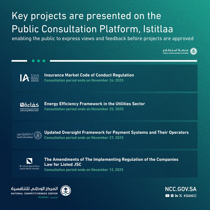 28 Projects Opened for Feedback through the Public Consultation Platform, Istitlaa